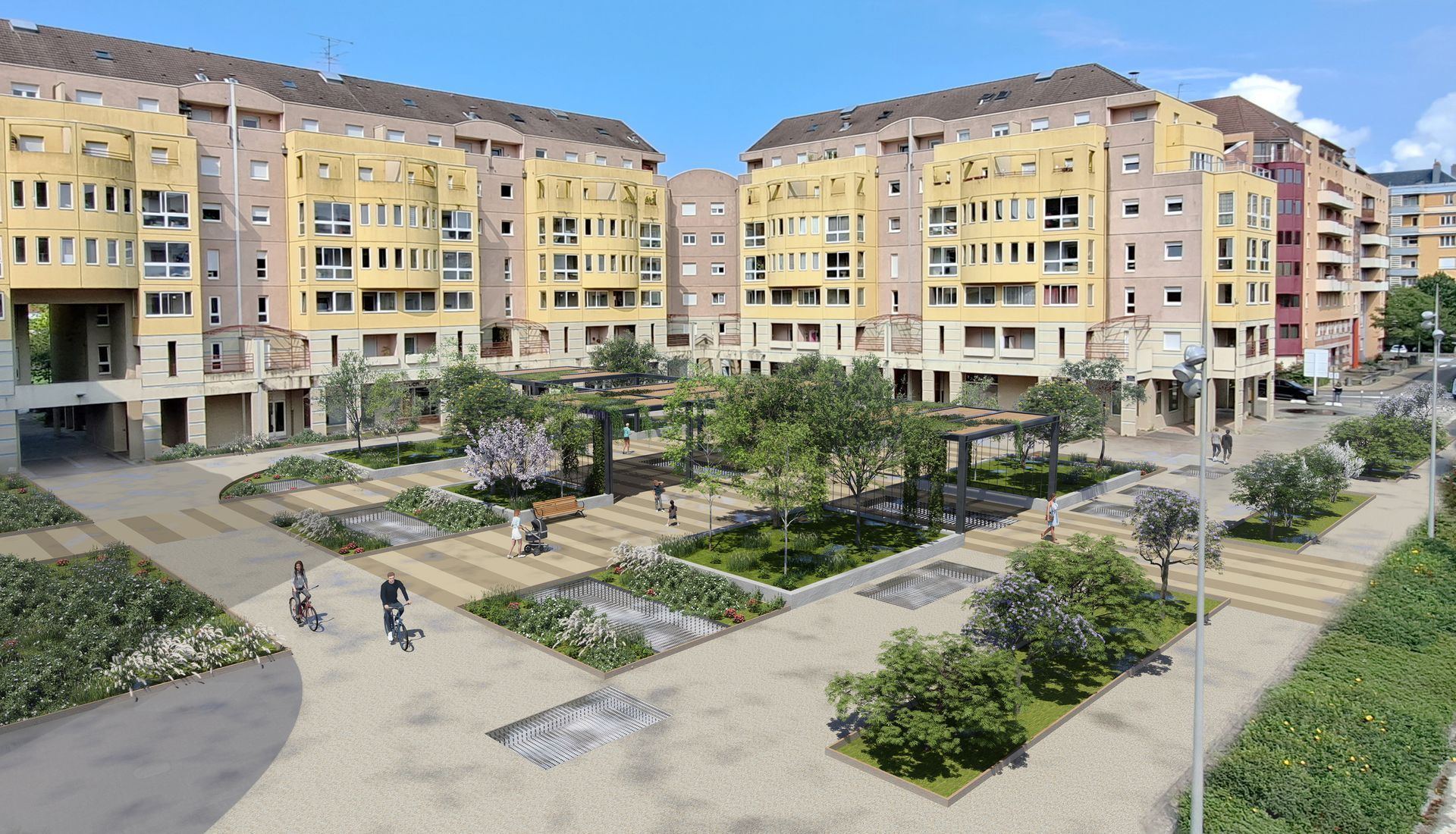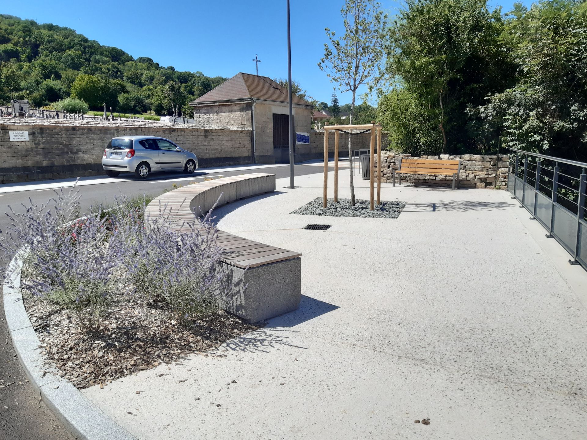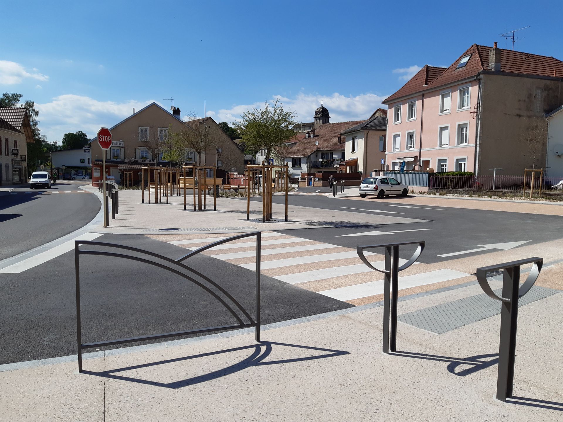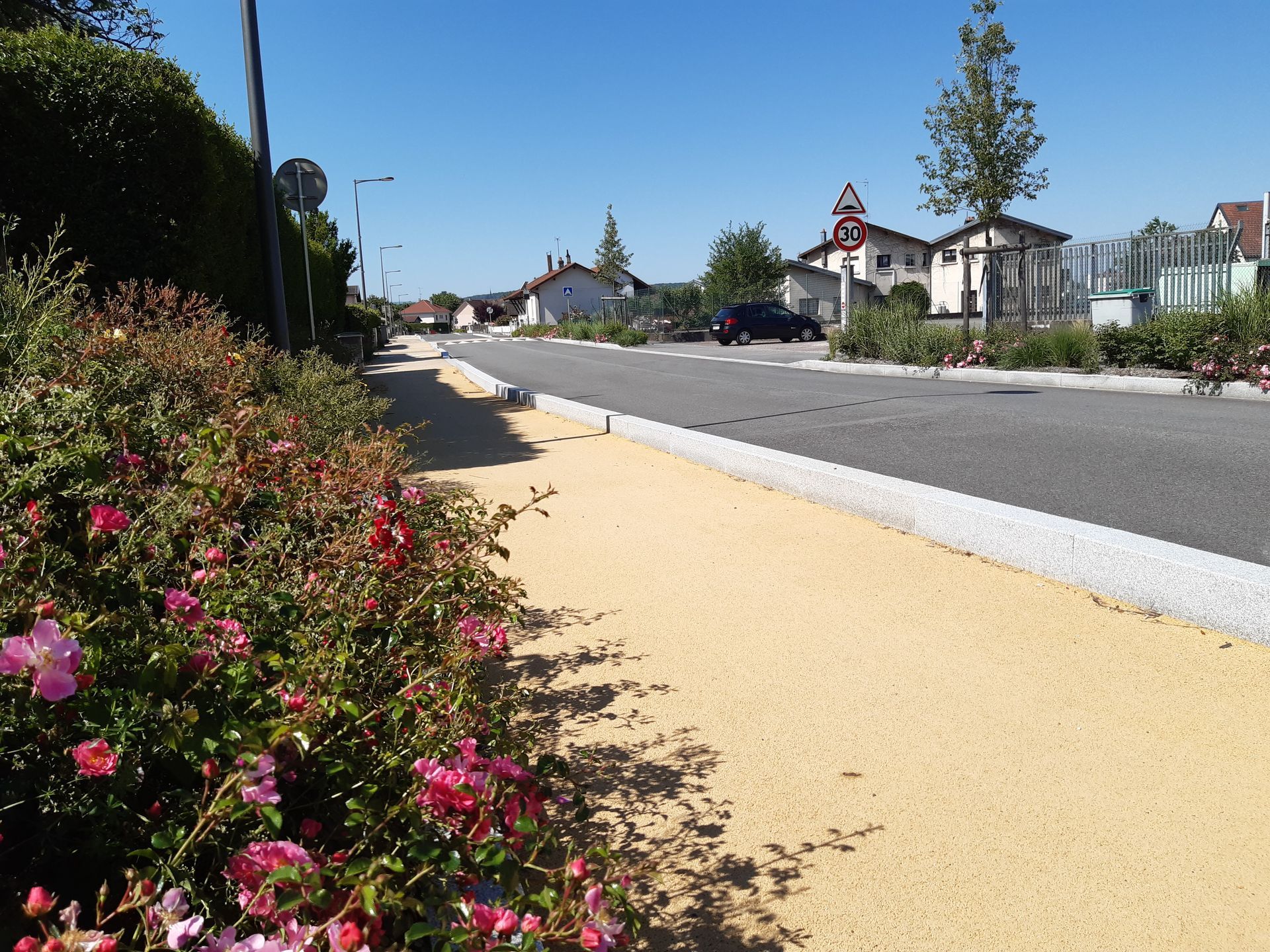 - Aménagements urbains et paysagers : centres-villes ou villages, places, rues, avenues, carrefours, aires de stationnement, pistes cyclables ;
